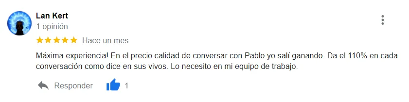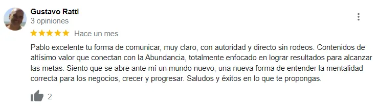 "Solo comentarte que después de ser parte de este proceso me parece que el monto que pague fue ridículo, un taller así debería costar más. Pero al mismo tiempo me parece una bendición, que cobrando un monto minúsculo le dan oportunidad a gente como yo y lo ayudan un montón. Mi respeto infinito para usted Pablo."